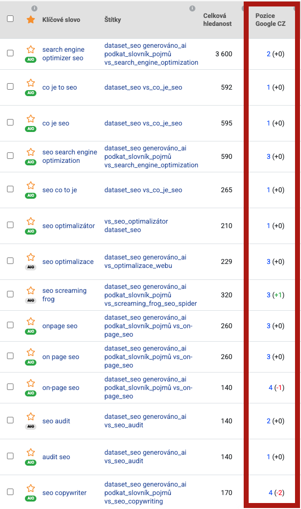 Na jakých pozicích se na Googlu rankuje SEOPRAKTICKY.CZ